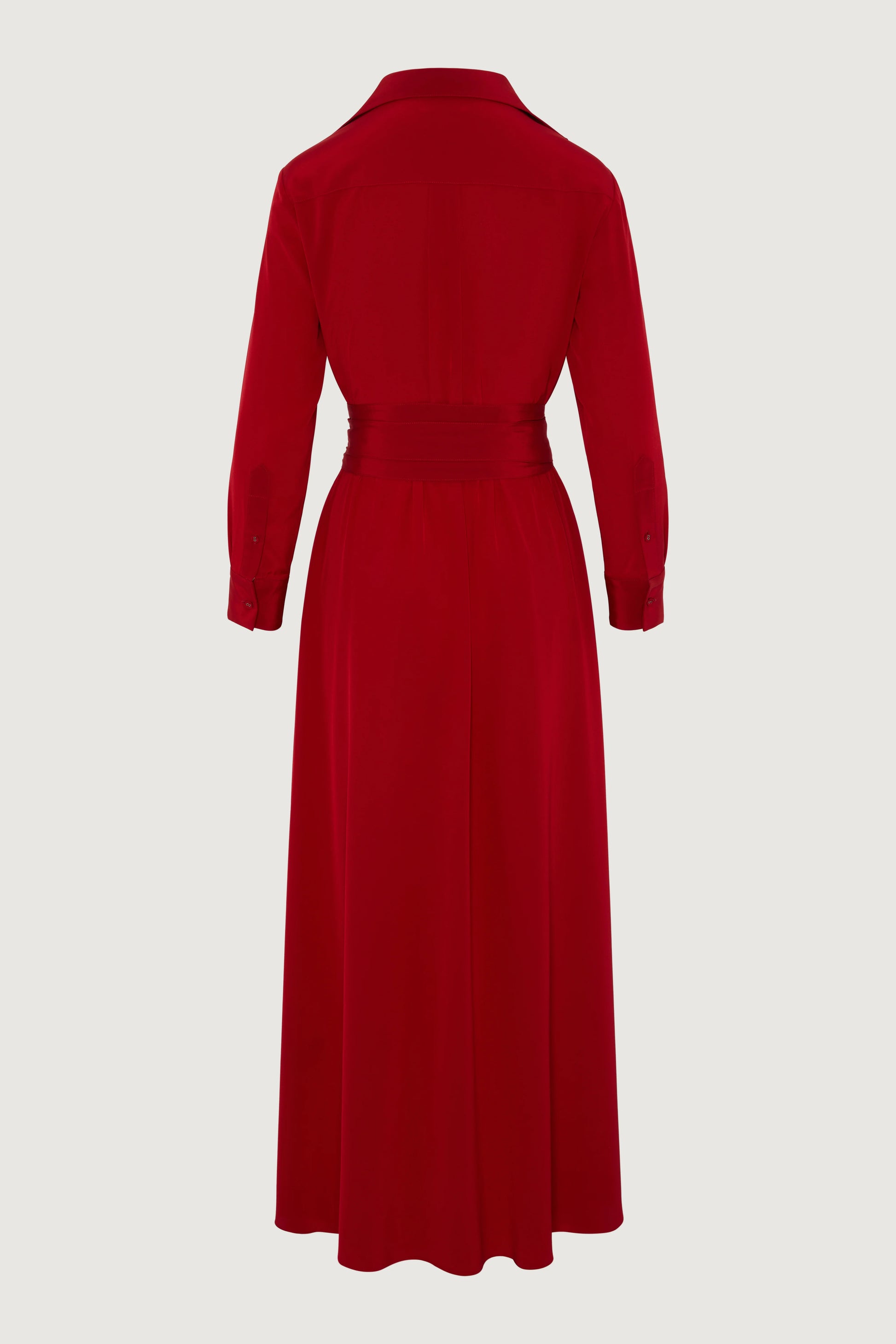 This elegant silk dress is beautifully crafted in a flowing crepe de chine fabric. Featuring a collar and a wrap detail bodice, designed to fall mid calf with half elasticated waist and side pockets for comfort and a removable obi belt. A timeless dress perfect for day to evening.
