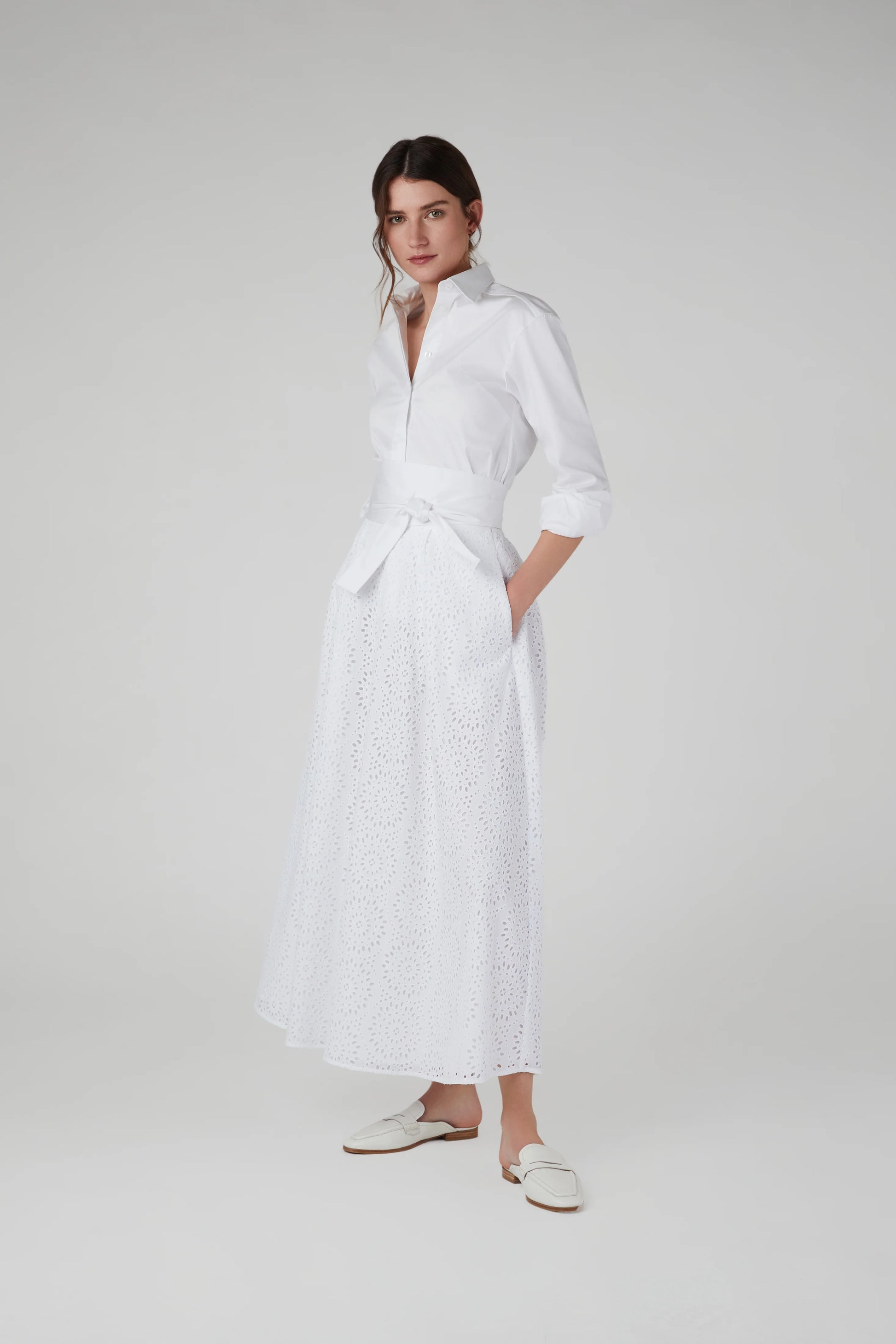 Indulge in elegance with our bespoke Broderie skirt. The maxi length and contemporary design make it a standout piece. Perfect for those who appreciate sophistication and luxury. Elevate your style with this exclusive addition to your wardrobe.