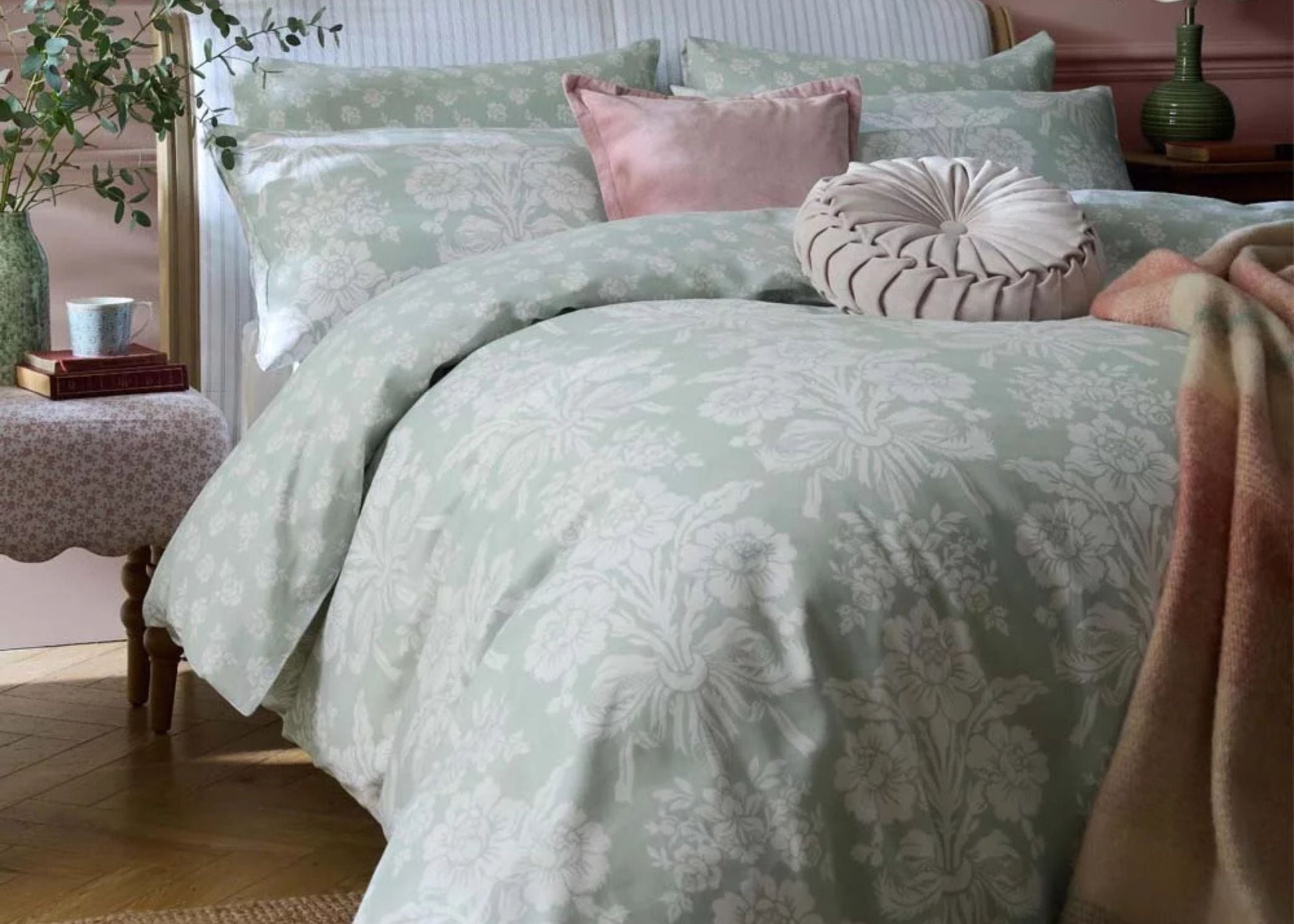Add a touch of timeless elegance to your bedroom with the Laura Ashley Tatton bedding set. Inspired by an antique wallpaper design, this 100% cotton sateen set in Duck egg Green offers a soft, luxurious feel with classic charm.